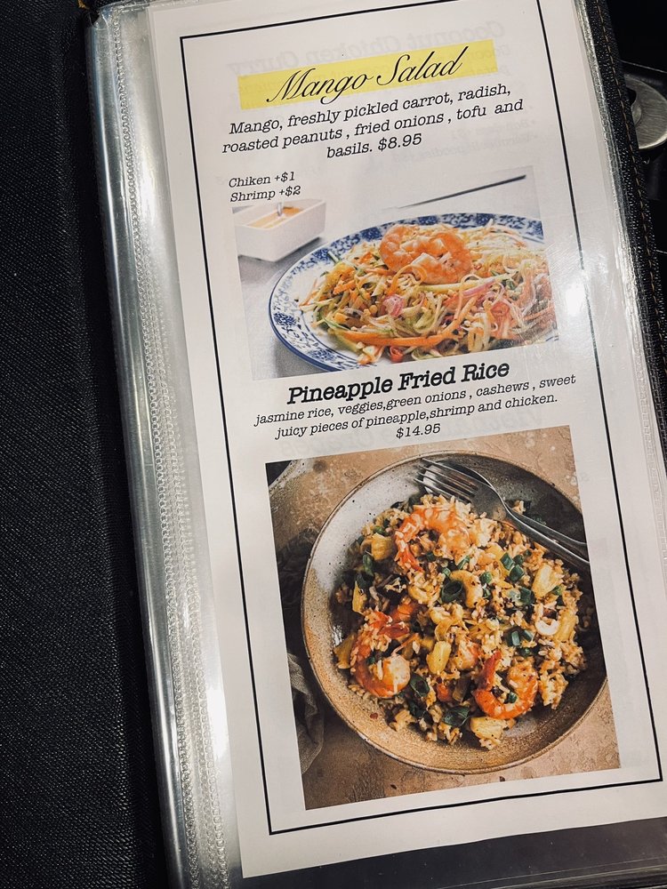 A mix of Lettuce, Bean Sprout, Pickled Carrot & Daikon, Onion, chopped basil, crushed peanuts, Fried Onion with choices of Chicken OR Shrimp&Pork OR Deep Fried Tofu